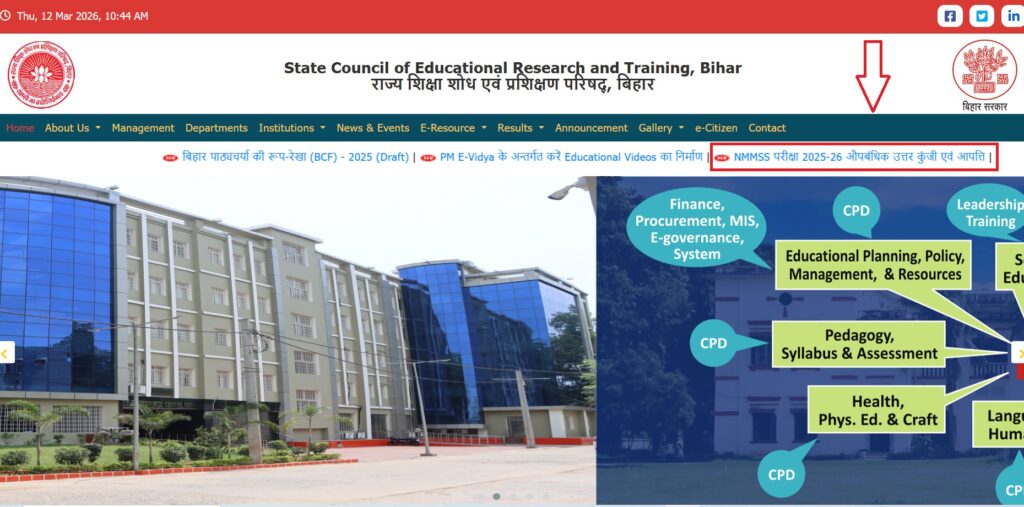 वैसे अभ्यर्थी जिन्होंने Bihar NMMS Scholarship Exam 2026 में शामिल हुए थे वे सभी 12 मार्च 2026 से अपना Answer Key SCERT पटना की आधिकारिक वेबसाइट scert.bihar.gov.in पर जाकर अपने Exam Roll Number & Date of Birth के माध्यम से ऑनलाइन आंसर की डाउनलोड कर सकते हैं।